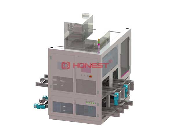 定子焊接機(jī)是對(duì)已插好線的定子進(jìn)行激光焊接的產(chǎn)線自動(dòng)化設(shè)備、智能化程度較高,配套MES系統(tǒng),設(shè)備自動(dòng)固定線頭,可實(shí)現(xiàn)自動(dòng)裝夾焊接保護(hù)工裝,同時(shí)配置有清潔機(jī)構(gòu),有效防止焊接過(guò)程中飛濺污染到定子。焊接機(jī)的工序流程:定子托板流入→讀碼→防護(hù)治具鎖緊→自動(dòng)激光焊接→防護(hù)治具松開(kāi)→托板放行等。